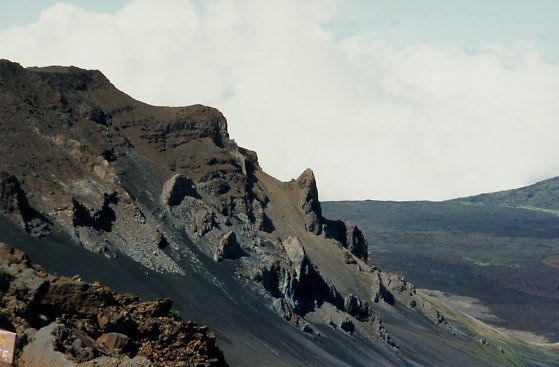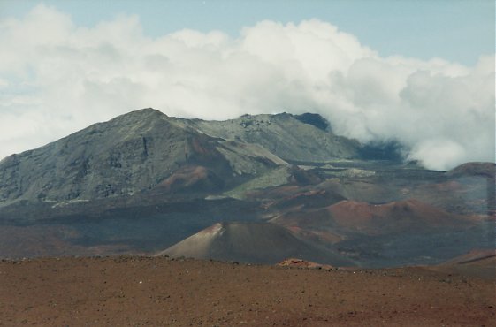 scenic pools along 'Obe'o Gulch, and the coast. Haleakala is the largest eastern dormant volcano, reached its greatest height, 3,600 meters (12,000 feet) above the ocean--some 9,100 meters (30,000 feet) from its base on the ocean floor. |